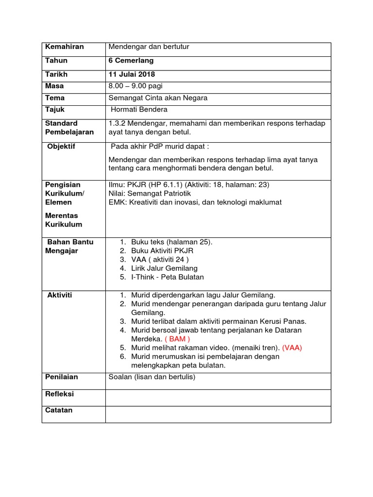 Rancangan Pengajaran Harian Pkjr Tahun 5 Pdf