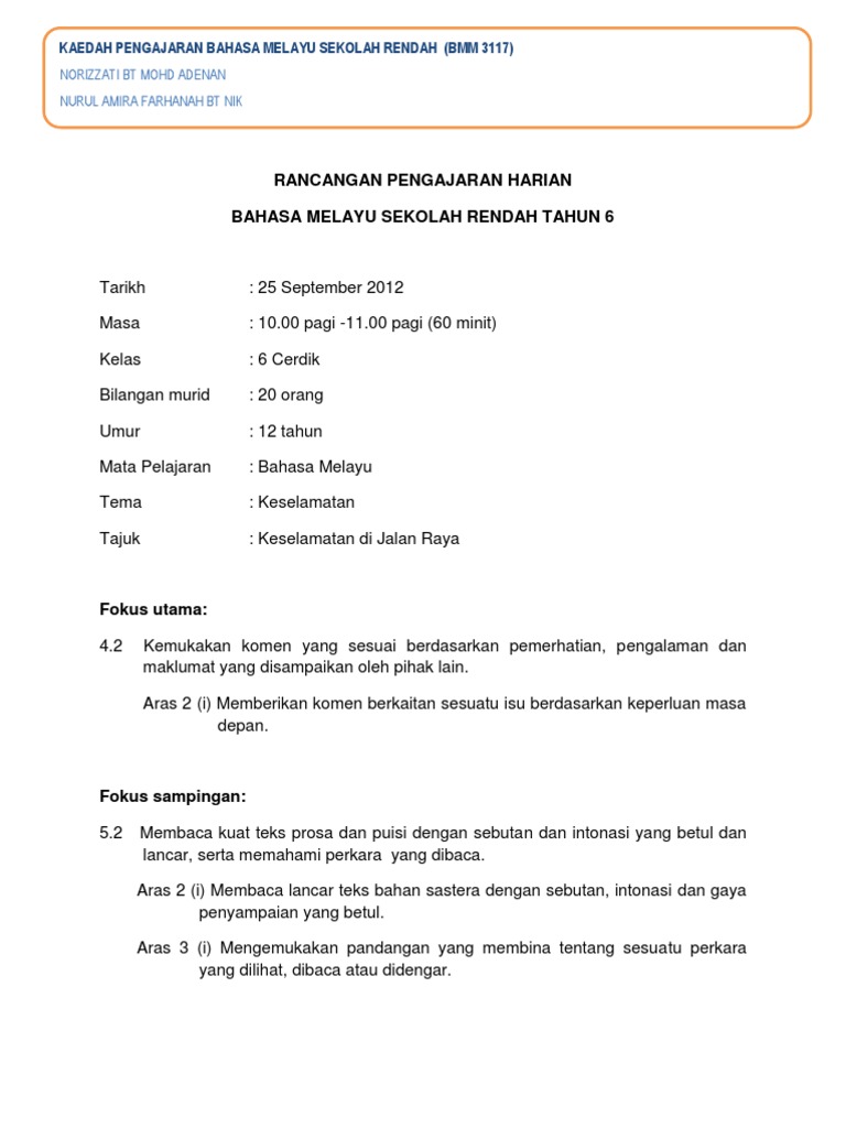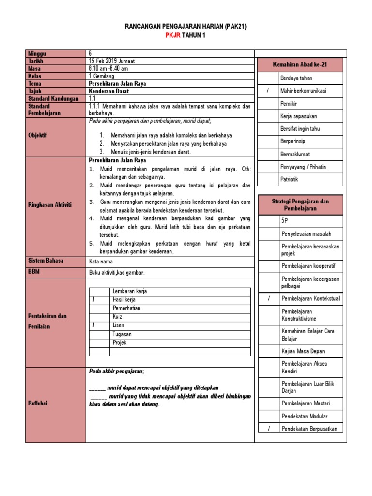 Rancangan Pengajaran Harian Pkjr Pendidikan Keselamatan Jalan Raya Pdf